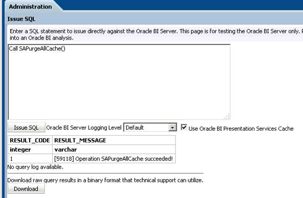 OBIEE – Clear Cache -SAPurgeAllCache()