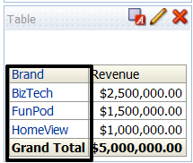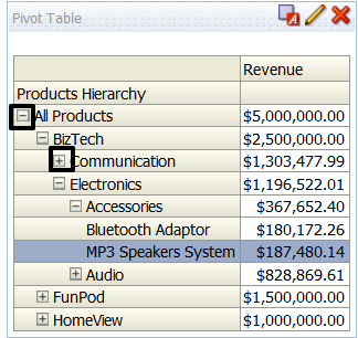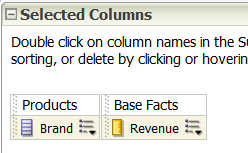Using the column drill down is slightly different because there are no pluses and minuses for the user to select. Here the user will be able to select click on the individual element in the brand column: