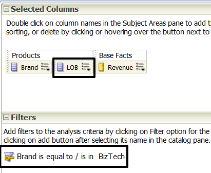 After clicking on BizTech, it introduced a new column into the analysis “LOB” and created a filter as seen below this may be an unwanted action: