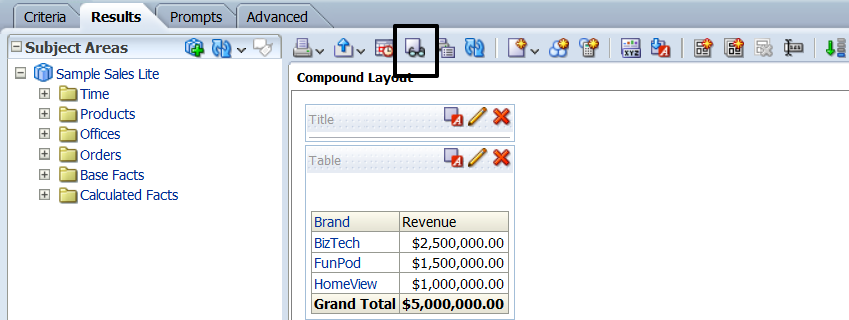 If you try to drill down in the Results tab it will create a filter in the Criteria tab that the user will need to delete before moving forward. Here I selected the BizTech brand in the Results tab :